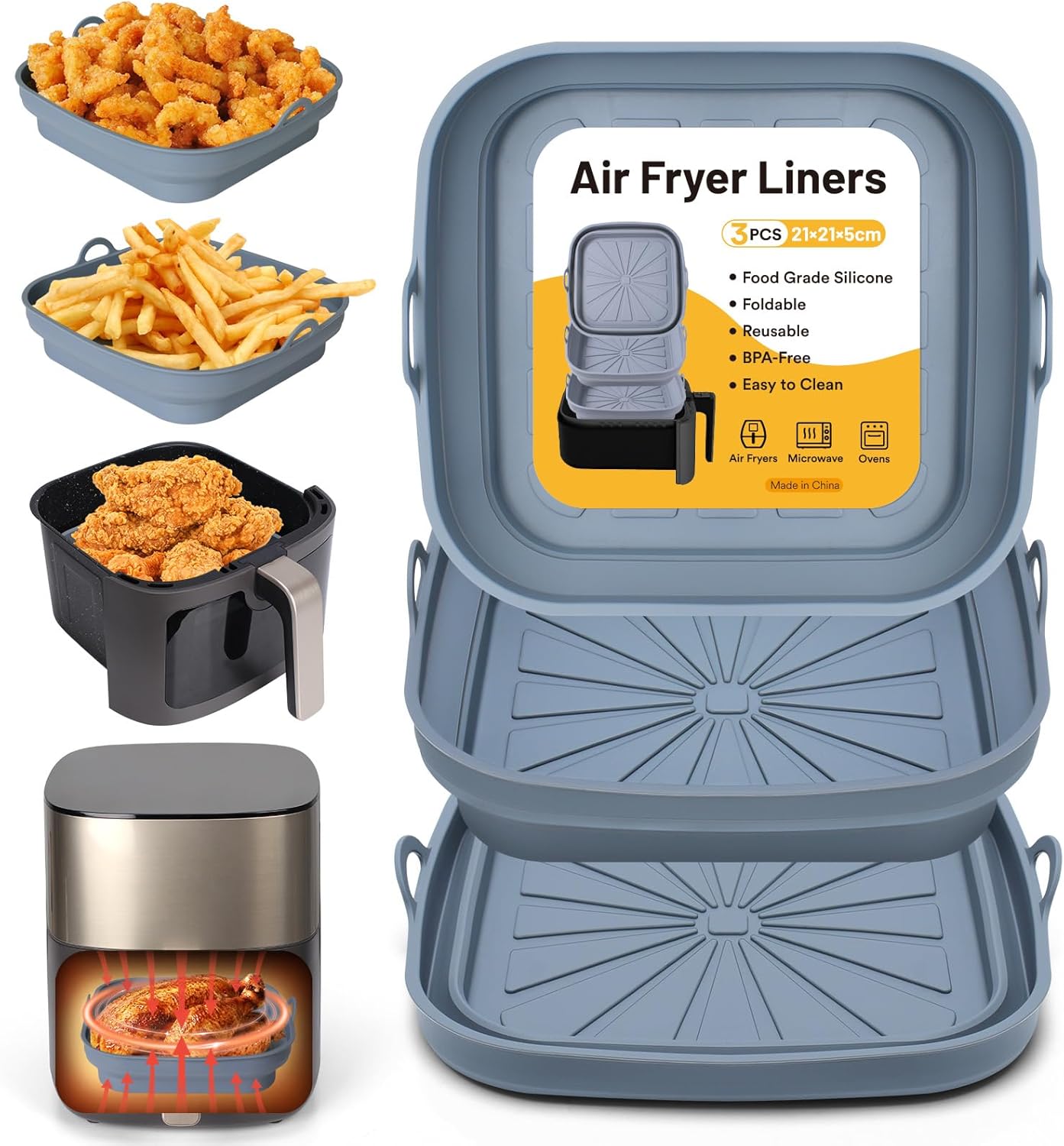 3er Set Silikonformen für Heißluftfritteuse | Faltbar & wiederverwendbar